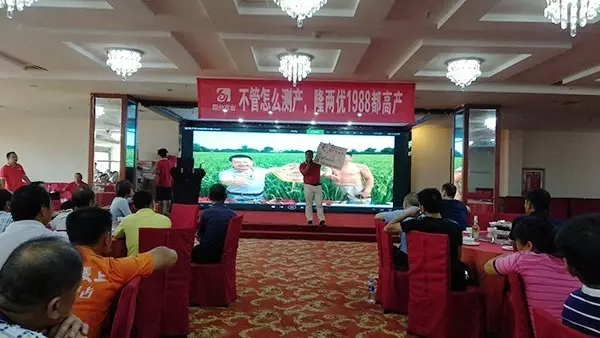 隨后,大家來到酒店進行訂購會,會議還沒開始,很多大戶紛紛問在哪里預訂,鼎城代理商鄧總說今天不僅給大家最好的品種,還有訂購抽大獎活動,訂的越多獲得大獎的概率就越大,瞬間點爆預訂現(xiàn)場,短短幾分鐘預訂金突破20萬,會議最終預訂財神稻隆兩優(yōu)1988種子達17000余斤。