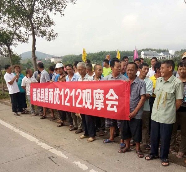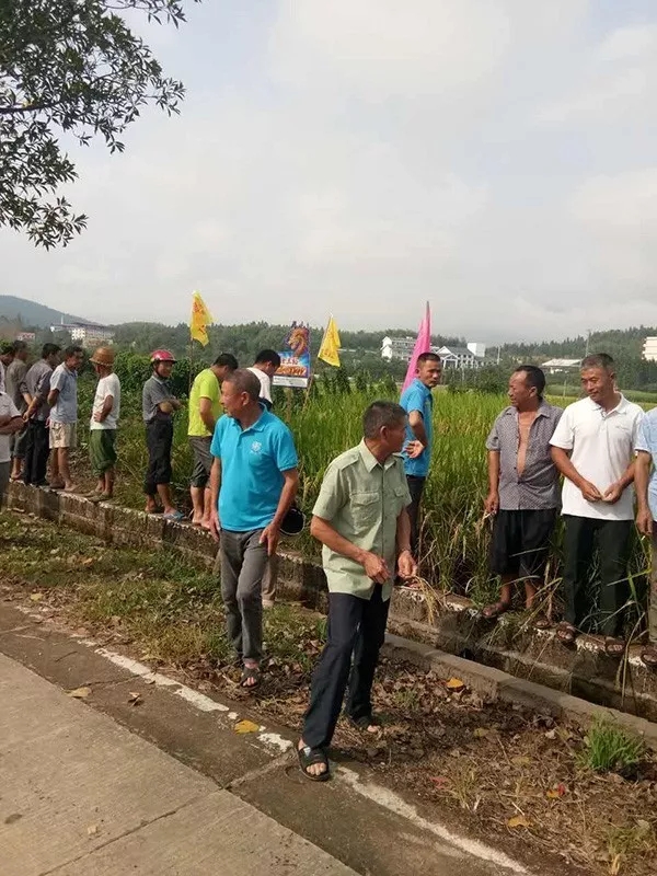 上午九點開始,農戶陸陸續(xù)續(xù)集合,集合完畢之后,大家一起趕往隆王稻觀摩田塊。不用說,開始看田塊了,三三兩兩的,開始散開了,看株型、看穗子、數(shù)結實率,很多農戶直接翻開稻子,檢查稻桿和根,看有無稻飛虱,鉆心蟲。今年飛虱、鉆心蟲肆掠了當?shù)氐奶飰K,這兩種病蟲害比較多,大家也更加關注品種的抗病性了。看完后,大家表示很滿意,這塊田不僅分蘗結實很強,連當?shù)厥⑿械娘w虱、鉆心蟲都無影無蹤,讓大家更加欣喜的是,隆王稻的米質那可是數(shù)一數(shù)二的,這個品種的表現(xiàn)實在是完美,不用說,來年就種它了。