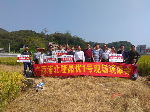 2017年10月29日,世界長壽之鄉(xiāng)——浦北縣,慶豐農(nóng)業(yè)有限公司組織召開了隆晶優(yōu)1號觀摩會。在整齊的示范田里,隆晶優(yōu)1號一片金黃,枝桿清秀,穗頭整齊,整片田塊基本沒有包括矮縮病在內(nèi)的病蟲害!包括浦北、靈山兩個縣的種子零售商也朋友們一起參觀了示范基地,認(rèn)真考察了隆晶優(yōu)1號的表現(xiàn),不斷稱贊!