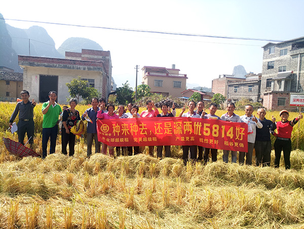 感謝亞華公司賀州合作伙伴龍丕松先生、劉洋先生,多年對深兩優(yōu)5814的推廣的支持!同時也感謝信都鎮(zhèn)陳春鳳女士等農資銷售朋友們,是你們的堅持,給農民朋友帶來豐收,帶來喜悅!