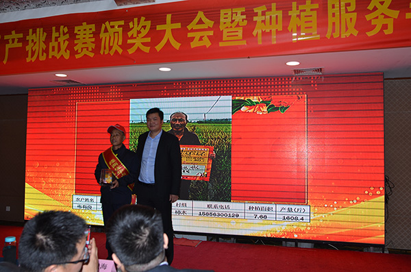 12日上午早餐結(jié)束后,大家一同前往北京中裕世紀(jì)大酒店參加“坐飛機(jī)游北京隆兩優(yōu)華占高產(chǎn)挑戰(zhàn)賽頒獎(jiǎng)大會(huì)暨種植服務(wù)手冊發(fā)布大會(huì)”。首先由亞華事業(yè)部總經(jīng)理洪總致辭,對本次獲得高產(chǎn)冠軍的農(nóng)戶表示祝賀,并介紹了隆兩優(yōu)華占在全國的種植情況和種植服務(wù)手冊;會(huì)議第二議程是頒獎(jiǎng)典禮,獲獎(jiǎng)農(nóng)戶依次上臺(tái)領(lǐng)獎(jiǎng)并合影留念,其中為獲得“推廣貢獻(xiàn)獎(jiǎng)”和“優(yōu)秀示范獎(jiǎng)”的農(nóng)戶頒發(fā)了證書和獎(jiǎng)金,獲得“傳奇獎(jiǎng)”的農(nóng)戶獎(jiǎng)勵(lì)了上萬元的黃金偉人像章;第三項(xiàng)便是由隆平大學(xué)副校長田中給大家詳細(xì)講解了隆平大學(xué)的創(chuàng)建過程以及創(chuàng)建的目的和意義;第四項(xiàng)是隆平高科吳天順老師和大家分享雜交水稻栽培技術(shù)。會(huì)議結(jié)束之后農(nóng)戶們紛紛表示受益匪淺。