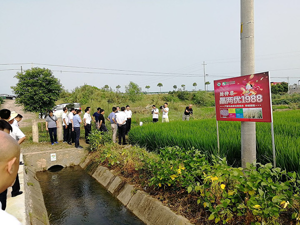 在洞庭春米業(yè)城頭山基地,所有考察領(lǐng)導(dǎo)及嘉賓都被一塊示范田所吸引,亞華種業(yè)百分農(nóng)業(yè)的劉浩經(jīng)理介紹到,這是2018年最新國(guó)審的一個(gè)實(shí)實(shí)在在幫農(nóng)戶(hù)增收、幫米企增效的品種晶兩優(yōu)1988。