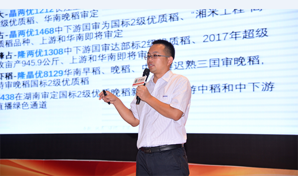 8月16日大會(huì)正式在隆華國(guó)際酒店舉行,首先由亞華種業(yè)總經(jīng)理孫衛(wèi)華先生致辭,隨后楊遠(yuǎn)柱院長(zhǎng)對(duì)晶兩優(yōu)1212的研發(fā)及隆平高科的研發(fā)情況作了重要演講、宮俊濤先生對(duì)超級(jí)稻與信息化服務(wù)推廣模式作相關(guān)講解、史勇敢先生對(duì)中湘農(nóng)業(yè)和晶兩優(yōu)1212作了詳細(xì)介紹等。