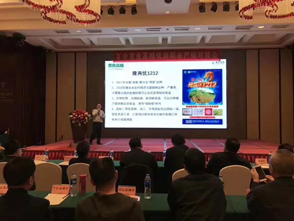 會議首先由百分農(nóng)業(yè)副總經(jīng)理魏新果先生做主題報告,大亞華百分農(nóng)業(yè)“通過隆平高科優(yōu)質(zhì)種質(zhì)資源、強(qiáng)大推廣實力與湖南中儲糧強(qiáng)大國資背景及完美倉儲條件強(qiáng)強(qiáng)聯(lián)合,實現(xiàn)就近推廣就近收儲,強(qiáng)力為米企低流通成本組織大量優(yōu)質(zhì)純正糧源,同時解決資金、倉儲等老大難問題,助力米企創(chuàng)建品牌之路,實現(xiàn)價值提升,來強(qiáng)力拉動‘隆兩優(yōu)1212’、‘晶兩優(yōu)641’、‘隆晶優(yōu)1212’稻谷加價回購,實現(xiàn)農(nóng)民增產(chǎn)增收,同時帶動產(chǎn)業(yè)鏈‘種、產(chǎn)、收、儲、銷’相關(guān)環(huán)節(jié)整體發(fā)展,形成完善的生態(tài)圈,最終實現(xiàn)湖南優(yōu)質(zhì)稻產(chǎn)業(yè)振興”的戰(zhàn)略構(gòu)思。
