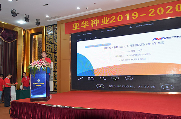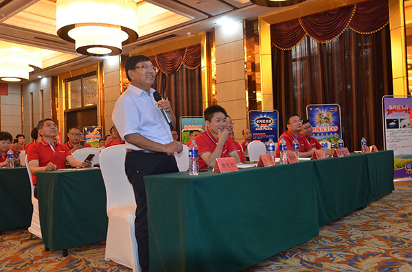隨著主持人姜文嘉先生慷慨激昂的開(kāi)場(chǎng)致辭,室內(nèi)會(huì)議正式開(kāi)始。首先,亞華事業(yè)部副總經(jīng)理劉松對(duì)亞華后續(xù)品種的各項(xiàng)數(shù)據(jù)進(jìn)行詳細(xì)介紹,主要從品種的熟期、產(chǎn)量、米質(zhì)等方面突出品種的優(yōu)勢(shì)。其次,由示范過(guò)新品種的經(jīng)銷(xiāo)商代表進(jìn)行發(fā)言,講述新品種示范的田間表現(xiàn),及自己示范的種植管理技術(shù),為新品種的推廣提供了有效的技術(shù)支持。然后,由亞華事業(yè)部總經(jīng)理洪祥先生以“新品種的運(yùn)作思路”為主題進(jìn)行演講,從亞華的發(fā)展歷史中,讓大家深刻認(rèn)知亞華是真正的大品種運(yùn)作者,亞華種,安全種,放心種,亞華不僅是家公司,更是一個(gè)響當(dāng)當(dāng)?shù)钠放啤:榭傄?ldquo;不求廣,求適宜;不求最大,求用心者;用兩到三年打造更多百萬(wàn)公斤品種”等講述了新品種的運(yùn)作思路。