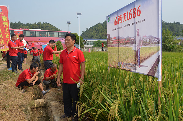 首先,亞華鳳稻——晶兩優(yōu)1686金黃的稻穗映入大家的眼球,穗大粒多、莖稈粗壯、結(jié)實(shí)率高等突出表現(xiàn),讓專(zhuān)家們贊不絕口;隨后,絲苗中的翹楚亞兩優(yōu)絲苗如同閃爍著金光吸引了一大批客戶(hù),示范過(guò)的經(jīng)銷(xiāo)商們?cè)诼愤呥吙催呌懻?,還有經(jīng)銷(xiāo)商自豪地說(shuō),“我種的比示范田的好得多”,株高115cm,整精米率更是高達(dá)68.6%,絲苗米質(zhì),耐高溫能力強(qiáng),抗逆性強(qiáng),不由得讓人感嘆,好品種理應(yīng)如此;然后,大家來(lái)到了伴隨陣陣清香如玉般耀眼的振兩優(yōu)玉占示范田,株型緊湊、株高適中、抗倒性強(qiáng)、長(zhǎng)寬比超過(guò)4、整精米率64.5%,食味評(píng)分高達(dá)92,種植效益明顯,大家紛紛要求與振兩優(yōu)玉占合影,不愧稱(chēng)之為“皇族米”;最后,大家來(lái)到有著國(guó)家“《食味稻品種品質(zhì)》標(biāo)準(zhǔn)一級(jí)”稱(chēng)呼的隆晶優(yōu)4013示范田前,感受著國(guó)標(biāo)一級(jí)米品種帶來(lái)的震撼,舌尖上的中國(guó)可能也不過(guò)如此,經(jīng)歷過(guò)40天高溫的隆晶優(yōu)4013結(jié)實(shí)率絲毫未受到影響,反而逆勢(shì)而行,產(chǎn)量可能遠(yuǎn)遠(yuǎn)超出預(yù)期。經(jīng)過(guò)一輪輪震撼觀(guān)摩后,大家依依不舍地離開(kāi)了示范田。
