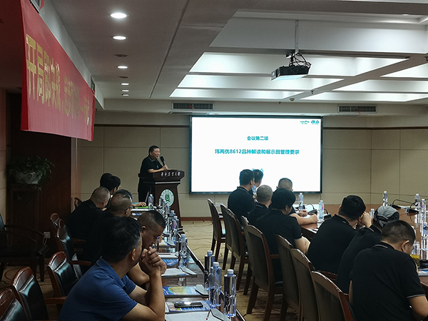 會議第二項(xiàng):技術(shù)專家姜文嘉對瑋兩優(yōu)8612品種進(jìn)行了詳細(xì)解讀,瑋兩優(yōu)8612源自隆平高科新一代核心不育系的超級中稻品種,該品種含6個稻瘟病抗病基因,3個氮高效基因,1個矮桿基因,米質(zhì)透明度1級,其品種的安全性和技術(shù)含金量超前。另外姜總也就近期示范田建設(shè),督查情況進(jìn)行了通報,并對后期管理提出了具體要求和建議。
