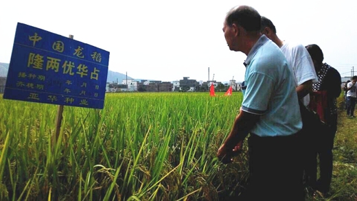 又到了收獲的季節(jié),又到了喜悅的時候。2014年10月22日上午,晴空萬里無云。廣東省羅定市的一塊水稻田間有一大群人正在興高采烈的討論著,他們是從周邊鄉(xiāng)鎮(zhèn)趕過來,參加湖南亞華種子有限公司羅定地區(qū)代理商張其鑒組織的水稻品種現場觀摩會的零售商及種植農戶們。