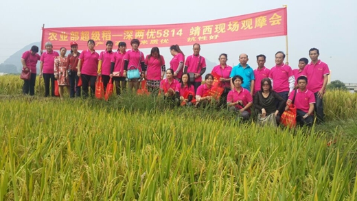 2014年10月14日,深兩優(yōu)5814靖西縣零售商觀摩會在靖西縣順利召開。此次深兩優(yōu)5814觀摩會靖西縣經銷商張軍共組織核心鄉(xiāng)鎮(zhèn)零售商22人和當地村民共60余人一同觀看深兩優(yōu)5814的田間表現。