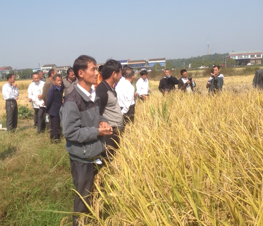 見證高產(chǎn),我們也要種植隆兩優(yōu)華占,因?yàn)榭梢灶A(yù)見的豐收。下午在寧鄉(xiāng)希爾頓大酒店舉行座談大會(huì),寧農(nóng)農(nóng)資總經(jīng)理歐軍宇介紹了隆兩優(yōu)華占在寧鄉(xiāng)的種植表現(xiàn),大家爭著要求報(bào)名來年種植隆兩優(yōu)華占。
