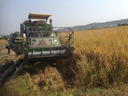 觀摩后,現(xiàn)場測產(chǎn)也開始了,收割機(jī)在田間來回收割稻穗,田邊有的在抬谷袋子,有人稱谷,有的丈量田的面積,沉甸甸谷子看著讓人陶醉,在近200人的監(jiān)督見證下,現(xiàn)場測產(chǎn)實(shí)打?qū)嵤照酆细晒犬€產(chǎn)1504斤。