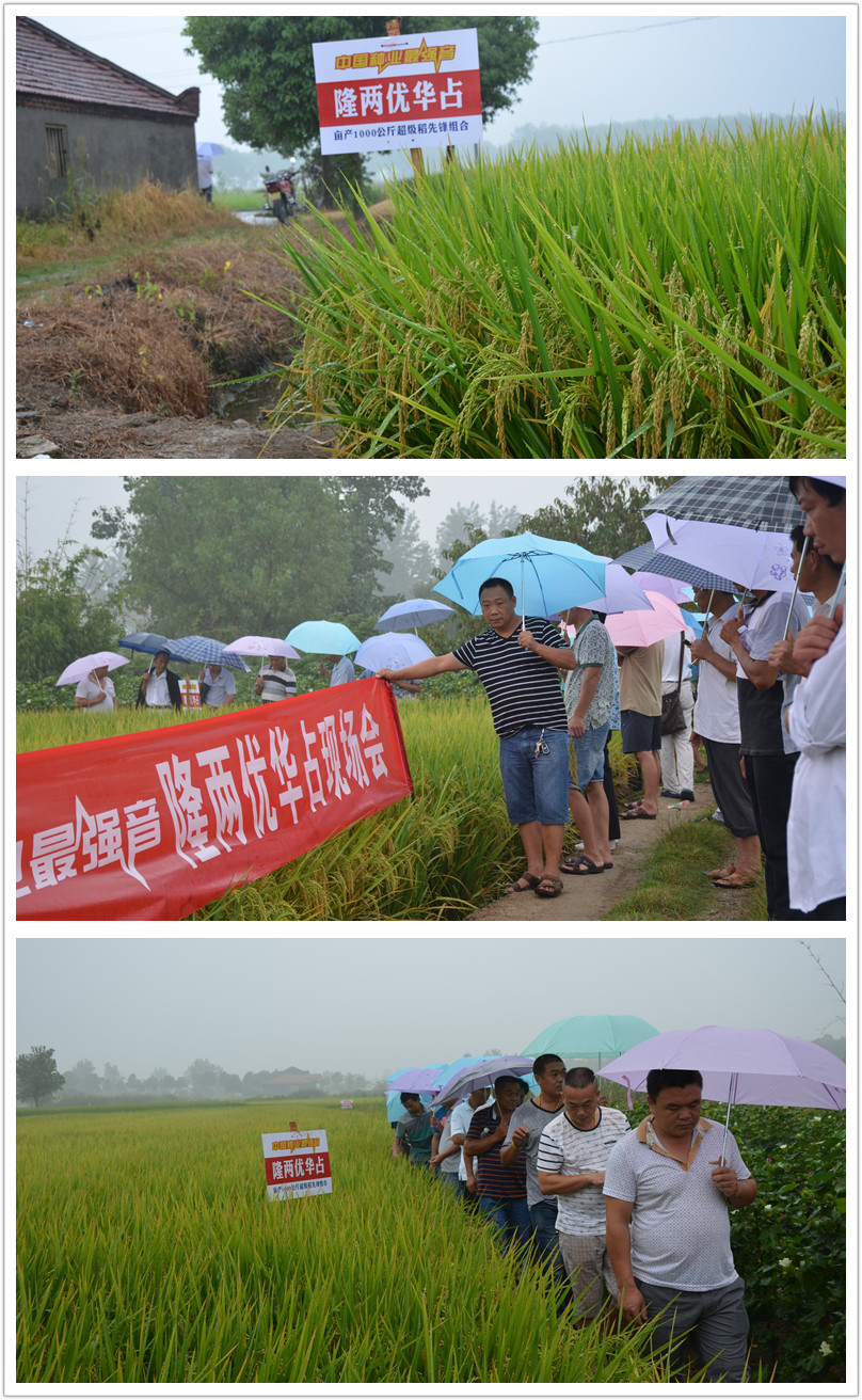 2015年8月18日中國種業(yè)最強(qiáng)音——隆兩優(yōu)華占公安縣現(xiàn)場觀摩會(huì)在章莊鋪銅橋村召開。公安縣章莊鋪銅橋村十三組連片種植隆兩優(yōu)華占300畝,有麥后直播及油菜后移栽,目前部分直播田葉青籽黃臨近收獲。該品種表現(xiàn)出熟期適宜、分蘗力強(qiáng)、抗病性好、結(jié)實(shí)率高、米質(zhì)優(yōu)良、適應(yīng)性廣、株高適合、抗倒伏性好等特點(diǎn)。這樣的好品種,用它完美的表現(xiàn)徹底的征服了公安縣高級農(nóng)藝師余新華挑剔的心,為此他決定2016年一定要大力推廣隆兩優(yōu)華占。