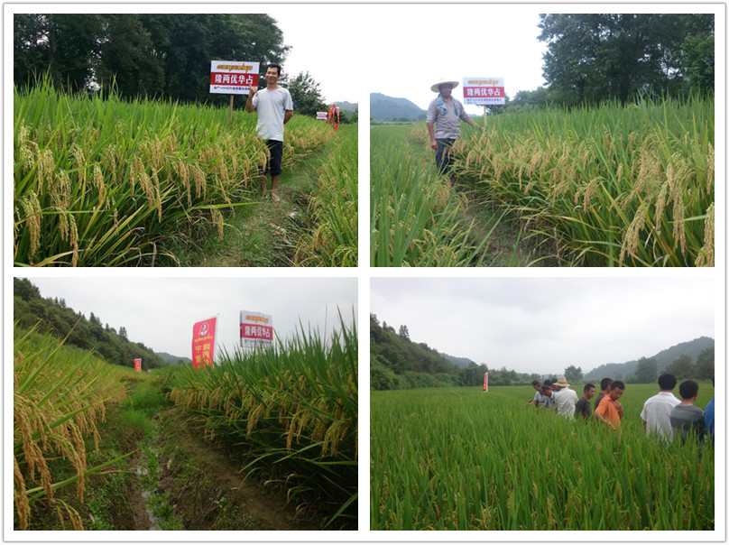 2015年8月22日,江西黎川縣龍安鎮(zhèn)迎來(lái)了來(lái)自中田鄉(xiāng)、龍安鎮(zhèn)、日峰鎮(zhèn)等鄉(xiāng)鎮(zhèn)的60多名零售商和種田大戶(hù),在蜿蜒的小道上走了三、四里地到達(dá)隆兩優(yōu)華占觀摩田,該田塊由龍安鎮(zhèn)宋周村農(nóng)戶(hù)余淳安(1593297013)種植,用種11斤,移栽9畝多田,隆兩優(yōu)華占在這片山坳的田塊上表現(xiàn)非常好,分蘗旺盛、株型緊湊、結(jié)實(shí)率相當(dāng)高,預(yù)計(jì)畝產(chǎn)1800斤以上,大家看了都豎起大拇指,嘖嘖稱(chēng)贊隆兩優(yōu)華占真不錯(cuò)!