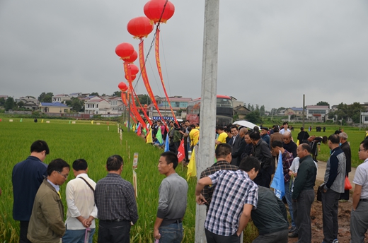 9月18日,袁隆平第四期超級(jí)稻攻關(guān)先鋒組合,中國(guó)龍稻-隆兩優(yōu)華占湖南省現(xiàn)場(chǎng)觀摩會(huì)在寧鄉(xiāng)舉行。來(lái)自全省的240余名經(jīng)銷(xiāo)商、種植大戶(hù)在寧鄉(xiāng)縣大成橋鎮(zhèn)鵲山村50畝示范基地,共同見(jiàn)證了隆兩優(yōu)華占的強(qiáng)勢(shì)表現(xiàn)。