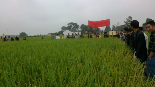 2014年9月13日,在亞華種業(yè)肥東縣經(jīng)銷商的帶領(lǐng)下,來自肥東縣各水稻區(qū)鄉(xiāng)鎮(zhèn)的零售商50余人。分別觀摩了位于肥東縣撮鎮(zhèn)的廣兩優(yōu)矮93和梁園鎮(zhèn)的隆兩優(yōu)華占的現(xiàn)場。