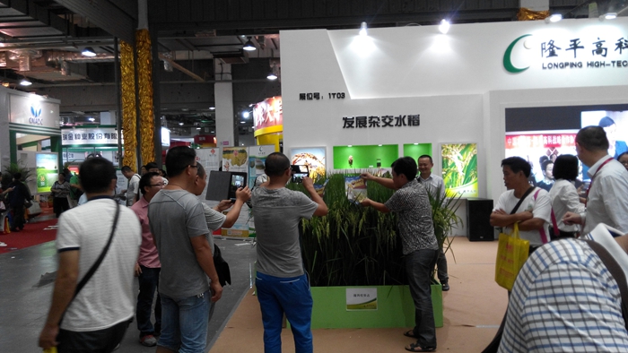 在現(xiàn)場,幾百家涉及雜交水稻種子的公司齊亮“利劍”,讓所有參展的經(jīng)銷商、零售商以及廣大的老百姓大飽眼福,一時間對未來品種難以取舍。就在大家看的眼花繚亂之際,其中一家公司的展廳突入眼球,讓所有人忍不住駐足反復(fù)參觀,久久不愿離去。這個展廳就是隆平高科展廳!