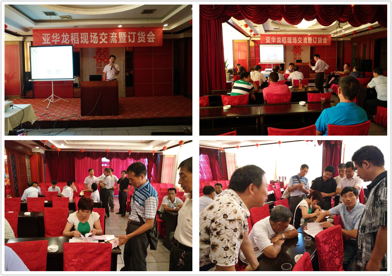 觀摩后在八方賓館進行了交流與定購,亞華種業(yè)劉松經理就預定營銷政策進行了解析,并對亞華龍稻的栽培技術作了強調,大家一致認為“亞華龍稻”是目前最好的一個品種:產量高、抗性好、米質優(yōu)、抗倒強,明年要加大宣傳力度、擴大辦點規(guī)模、加強技術培訓、擴大種植面積,6個種植“亞華龍稻”的鄉(xiāng)鎮(zhèn)介紹了種植情況與栽培技術,并認為還可改進方法提高產量,首先是要插足基本苗,大苗洗插每畝大田用種量1公斤,拋秧與撒播每畝大田用種量1.25----1.5公斤;再就是施足肥料,每畝大田施45%含量的復合肥40公斤,尿素10公斤,氯化鉀10公斤,這樣能達到更高的產量,大大提高農戶的種植效益。