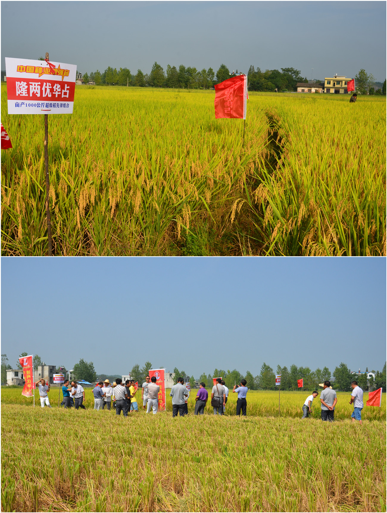 2015年9月8日上午,代理商盧作保組織了本年度隆兩優(yōu)華占在修水的首秀,各鄉(xiāng)鎮(zhèn)經(jīng)銷商以及種田大戶四十余人集聚渣津鎮(zhèn)東堰村隆兩優(yōu)華占十畝連片田間,參觀了隆兩優(yōu)華占現(xiàn)場收割測產(chǎn)大會。
