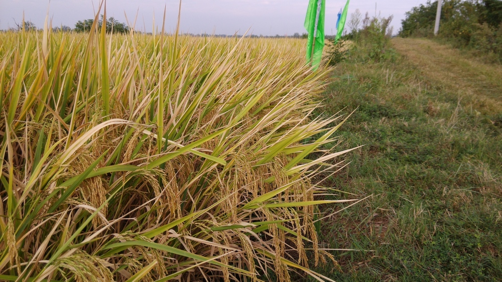 上午10時許,大家一起選了一塊長勢不是很好的田塊,用來實打驗收。此驗收田屬于種植戶鵬永貴(13972914060),在大家的期許中,實打驗收正式開始。在收割的過程中,很多的種田大戶都下田幫忙和到田中繼續(xù)深入的觀察(田的中央,收割后方便進入)。收割完成后,用GPS定位儀測出田塊的面積為0.9畝,總共收濕谷1852.2斤,畝產(chǎn)干谷為1750斤,比去年增產(chǎn)了200多斤。
