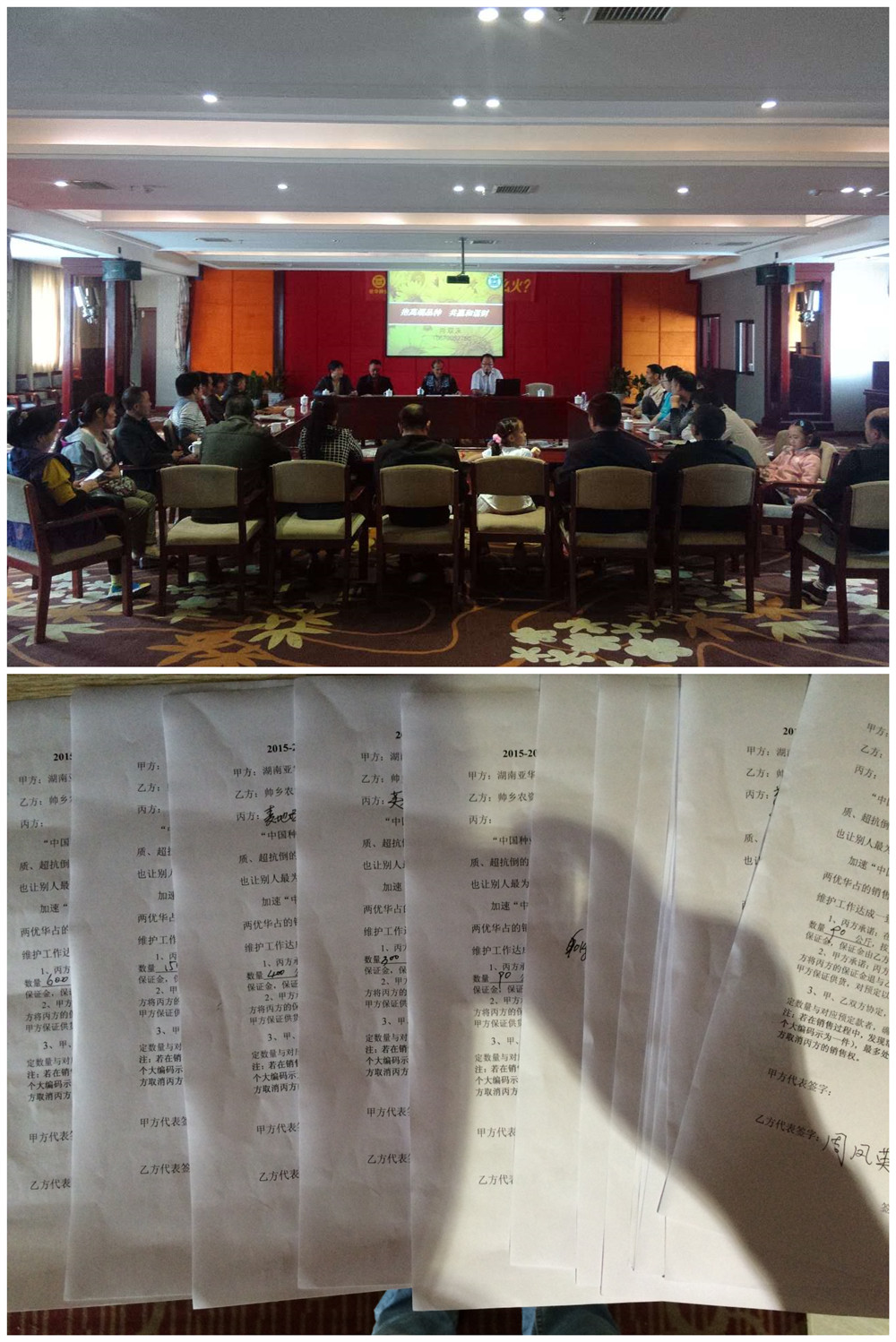 會(huì)議由湖南亞華種子有限公司業(yè)務(wù)經(jīng)理肖雙來主持,他首先介紹了亞華種業(yè)以及其旗下重點(diǎn)推廣品種——隆兩優(yōu)華占的特征特性,隨后還介紹了隆兩優(yōu)華占在國內(nèi)的形勢、銷售模式、市場維護(hù)方案等。隨后大家就市場維護(hù)進(jìn)行討論,最終達(dá)成一致并簽署協(xié)議,足見大家想維護(hù)好市場的誠意!
