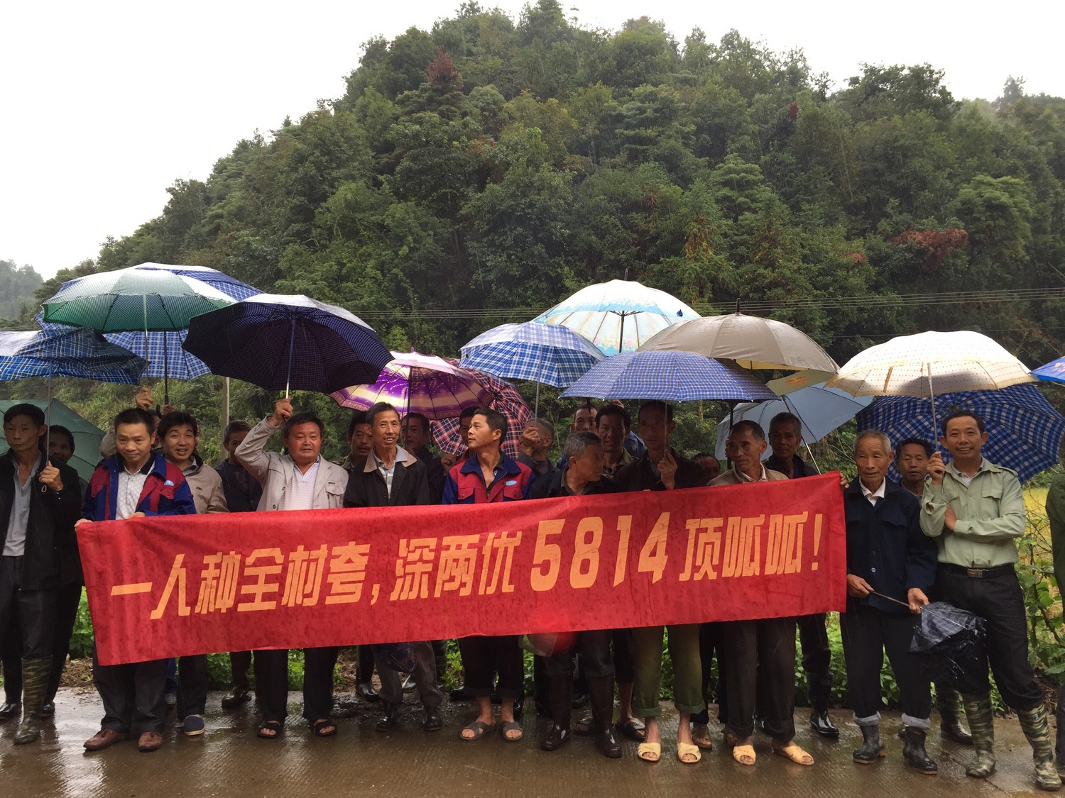 2015年10月6日,天空下著細雨,一行人冒雨來到萬載縣雙橋鎮(zhèn)參觀亞華種業(yè)的王牌品種——深兩優(yōu)5814,自推廣以來,深兩優(yōu)5814以其高產(chǎn)、穩(wěn)產(chǎn)、高抗稻瘟病的特性深得農(nóng)戶喜歡。雖然今年江西萬載縣地區(qū)稻瘟病發(fā)病嚴重,但是深兩優(yōu)5814沒有發(fā)病現(xiàn)象,這讓種植戶們十分欣喜,這充分體現(xiàn)了深兩優(yōu)5814的優(yōu)秀品質(zhì),有觀摩田種植戶說:“種了幾年,每年都表現(xiàn)都非常好”!