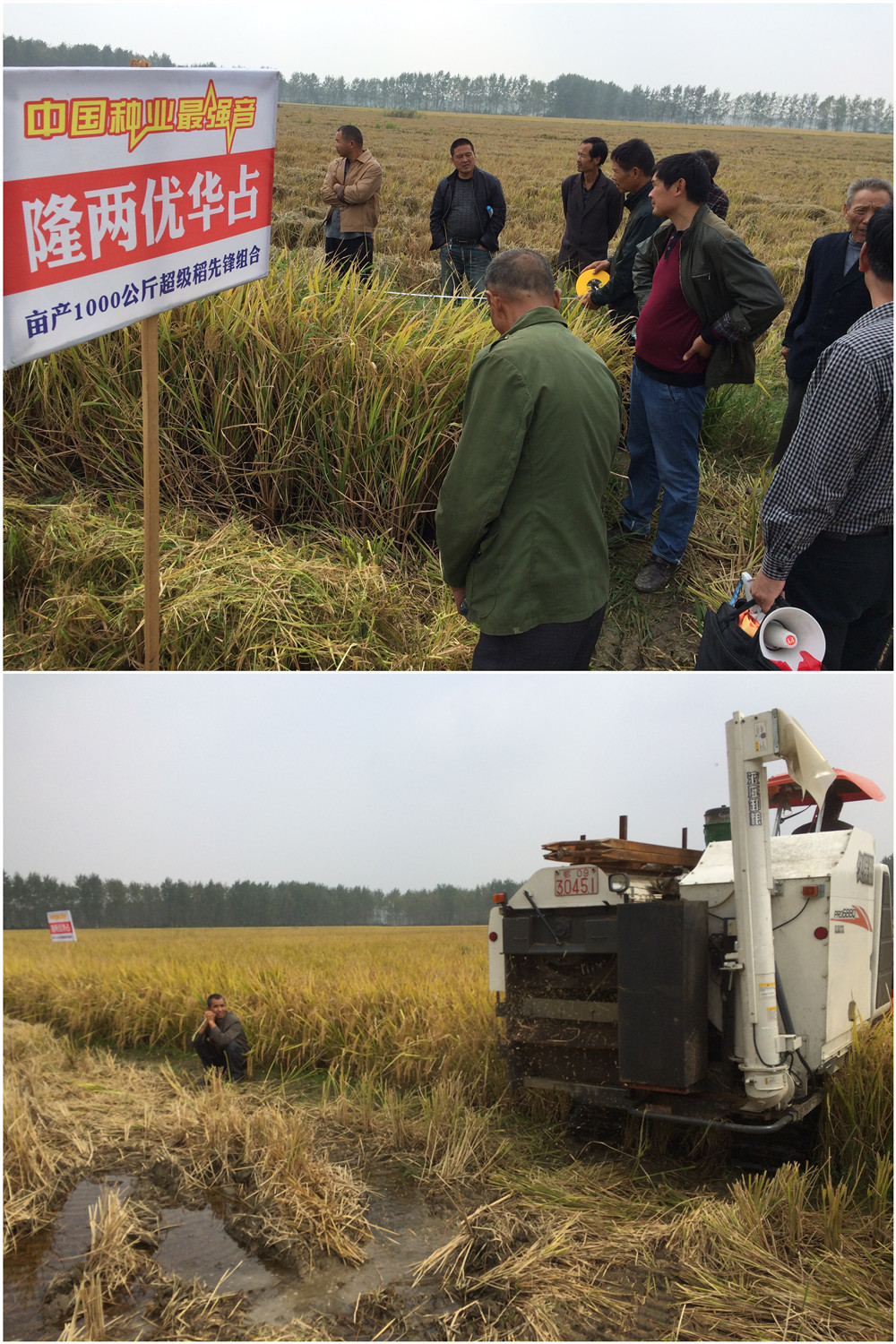 漢川代理商許合斌說:“隆兩優(yōu)華占的產(chǎn)量,要是只有2.2斤/平方,我絕對不會叫大家來看!收割機來了,我們收了看!”