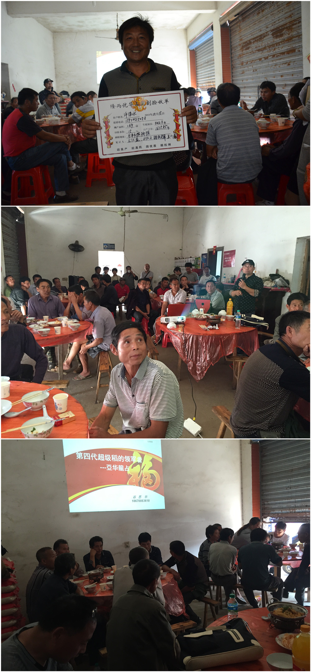 2015年10月15日,江西余干縣代理商朱保華組織零售商和種田大戶70余人集聚高埂村20畝連片亞華龍占示范田,秋高氣爽,彩旗飄飄,亞華龍占昂首挺立等待著大家的檢閱,測(cè)產(chǎn)的號(hào)角即將吹響!
