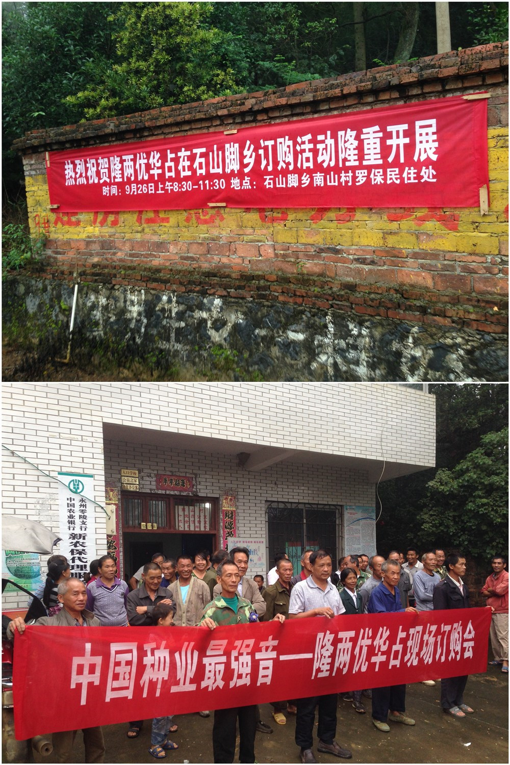 2015年9月26日,在零陵區(qū)石山腳鄉(xiāng)南山村召開(kāi)了隆兩優(yōu)華占現(xiàn)場(chǎng)預(yù)訂大會(huì),共80余位零售商與大戶到場(chǎng)。會(huì)議現(xiàn)場(chǎng)大家認(rèn)真聽(tīng)取了亞華種業(yè)銷(xiāo)售人員對(duì)隆兩優(yōu)華占四大優(yōu)勢(shì)的介紹——超高產(chǎn),超優(yōu)質(zhì),超抗病,超抗倒,大家一致認(rèn)可只有同時(shí)具備這四大優(yōu)勢(shì)的品種才是農(nóng)戶的種植首選。隨后,零陵聯(lián)合利農(nóng)唐總介紹了在零陵區(qū)隆兩優(yōu)華占的表現(xiàn)和典型,以及“不預(yù)定,不供種”的銷(xiāo)售政策。預(yù)訂會(huì)農(nóng)戶積極踴躍地訂購(gòu)隆兩優(yōu)華占,大家都說(shuō):明年我們就種隆兩優(yōu)華占!