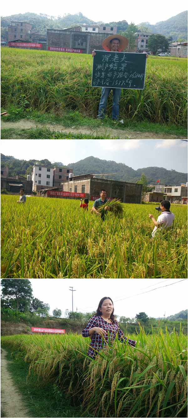 按照縣政府“扶誰、怎么扶、誰來扶”的指導(dǎo)精神,浦北縣良晨農(nóng)業(yè)合作社選擇了在貧困人口集中的浦北縣平睦鎮(zhèn)推廣高產(chǎn)好吃的優(yōu)良品種“深老大”取得了良好的經(jīng)濟(jì)效應(yīng)和社會(huì)效應(yīng)。11月5日,在這個(gè)送秋迎冬的日子,縣委常委、副縣長(zhǎng)、“美麗廣西”鄉(xiāng)村建設(shè)(扶貧)工作隊(duì)隊(duì)長(zhǎng)李國(guó)君博士,縣扶貧辦領(lǐng)導(dǎo)馮民,平睦鎮(zhèn)秦鎮(zhèn)長(zhǎng)、黃書記及縣貧困村主任、書記,各鄉(xiāng)鎮(zhèn)農(nóng)技服務(wù)推廣站負(fù)責(zé)人頂著烈日,不顧幾十公里山路顛簸,親臨“深老大”測(cè)產(chǎn)驗(yàn)收現(xiàn)場(chǎng),評(píng)估超級(jí)稻“深老大”在產(chǎn)業(yè)扶貧中的經(jīng)濟(jì)效應(yīng)及社會(huì)效應(yīng)。
