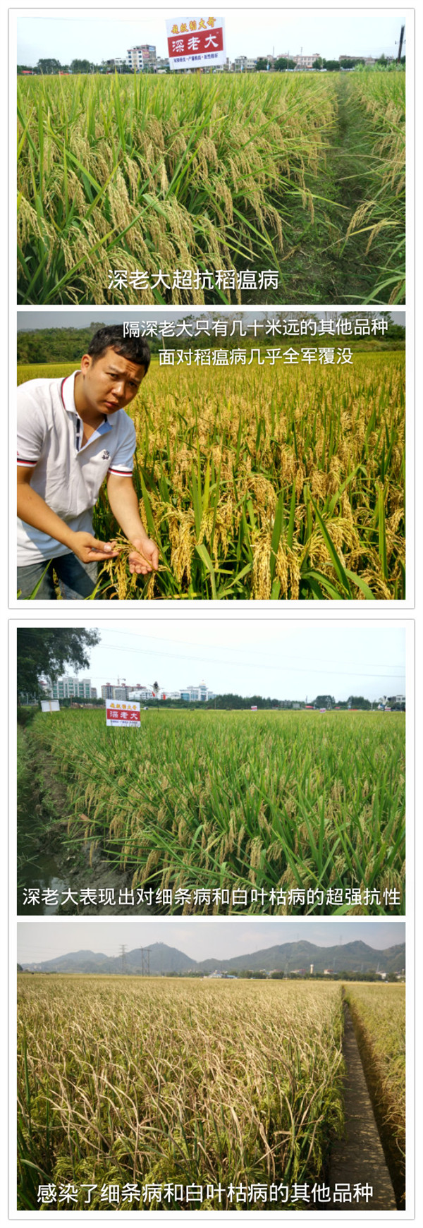 廣西橫縣是當(dāng)之無愧的中國(guó)茉莉花之鄉(xiāng)。然而,在這個(gè)秋天,成片成片的水稻細(xì)條病和白葉枯病讓部分沉浸在花海之中的農(nóng)民笑不起來,在細(xì)菌性病害肆虐的情況下今年橫縣的水稻種植情況非常不理想,但有一個(gè)品種卻表現(xiàn)出超強(qiáng)的抗性,這就是““深老大””。經(jīng)過今年幾千畝的小面積推廣,“深老大”無論在產(chǎn)量、抗性、米質(zhì)方面已經(jīng)表現(xiàn)出了強(qiáng)大的生命力,特別是對(duì)水稻細(xì)菌性病害——細(xì)條病和白葉枯病有超強(qiáng)抗性,相較其他優(yōu)質(zhì)品種來說優(yōu)勢(shì)依然特別明顯。