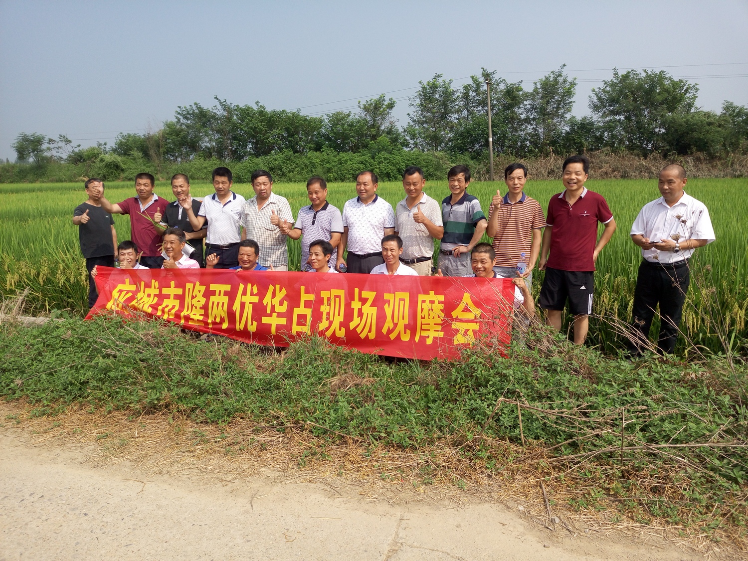 大約觀摩了半個多小時后大家一同趕往下一個觀摩點合張村,該點隆兩優(yōu)華占表現(xiàn)極好,種植管理水平也高,預估畝產(chǎn)能達到一千八百斤以上,增強了各經(jīng)銷商對隆兩優(yōu)華占增產(chǎn)潛力的信心。之后大家一起返程趕回應城。