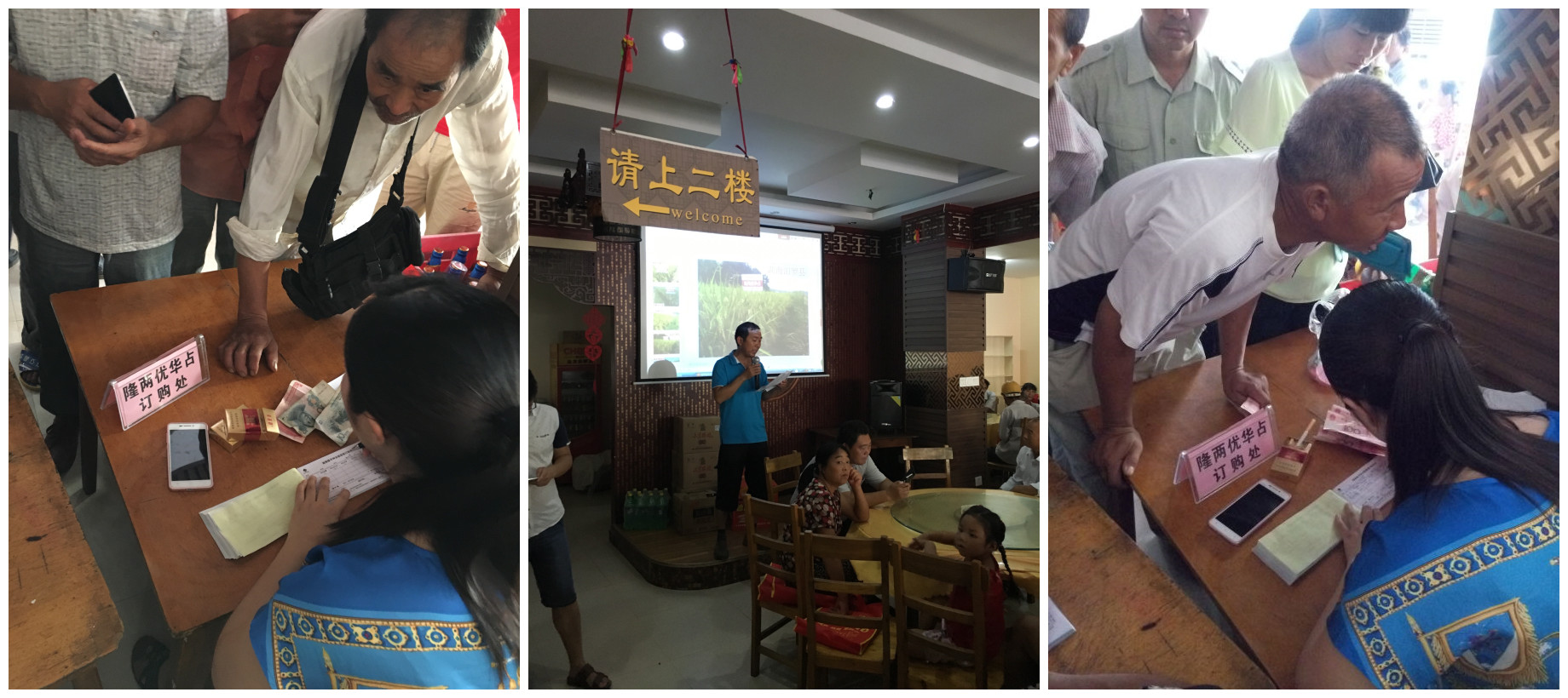 隨后,在鎮(zhèn)上的福滿堂酒店展開了本年度的定購會(huì)議,到會(huì)人員近200人。零售商劉經(jīng)理進(jìn)行簡單的開場后,由區(qū)域經(jīng)理黃凱講解隆兩優(yōu)華占的優(yōu)勢:連續(xù)四年區(qū)試產(chǎn)量第一,最高超兩千斤,尤其是品種“超優(yōu)質(zhì),超抗病,超高產(chǎn),超抗倒”的特性要優(yōu)于其它品種。然后又講解了定購政策與優(yōu)惠,并強(qiáng)調(diào)由于是好品種,各地需求量都比較大,所以必須要提前預(yù)定才能拿到種子。
