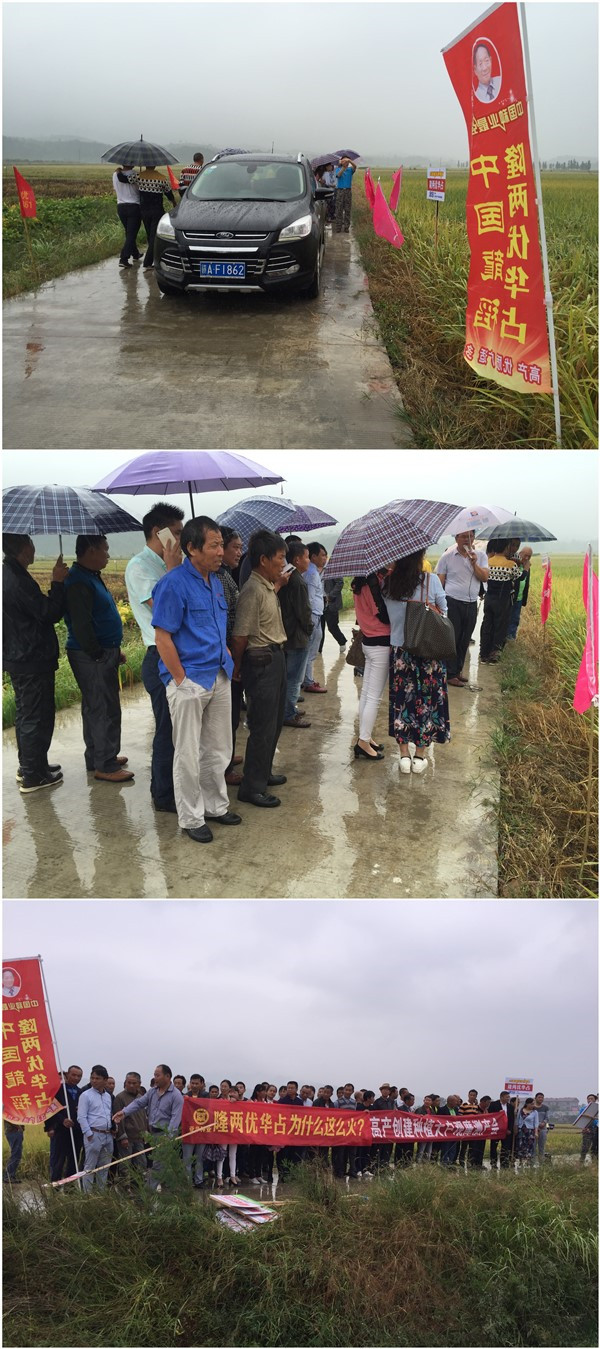 2016年10月7日,一場秋雨一場寒,在秋風(fēng)細(xì)雨之中,十余輛小車向永修縣白云山鄉(xiāng)東新農(nóng)場開進(jìn),全縣零售商和種田大戶八十余人對“高產(chǎn)創(chuàng)建”項(xiàng)目使用品種——隆兩優(yōu)華占進(jìn)行了田間察看和觀摩。