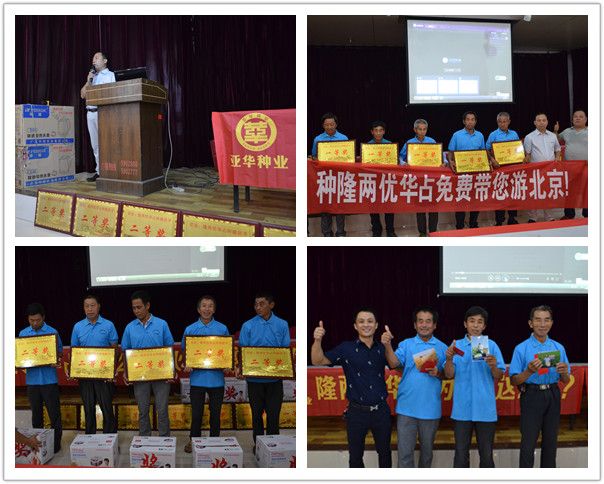 緊接著就是高產(chǎn)頒獎環(huán)節(jié),今年在代理商方華的組織、分工下,弋陽的隆兩優(yōu)華占測產(chǎn)會可謂是遍地開花、捷報頻傳。盡管今年年成不好,各品種在經(jīng)受七月份中旬到八月份中旬持續(xù)高溫影響,導(dǎo)致表現(xiàn)普遍比往年略遜色,但隆兩優(yōu)華占的結(jié)實率依舊高達85%,產(chǎn)量與同類品種比較普遍還是要高。在今年的測產(chǎn)會中,依然涌現(xiàn)出許多代表的種植戶,他們用實實在在的高產(chǎn)為隆兩優(yōu)華占代言。他們能夠獲得一等獎——免費北京游、二等獎——電飯煲、三等獎——電熱壺也是當(dāng)之無愧。相信隆兩優(yōu)華占的高產(chǎn)事跡將會成為種植戶們津津樂道的佳話。