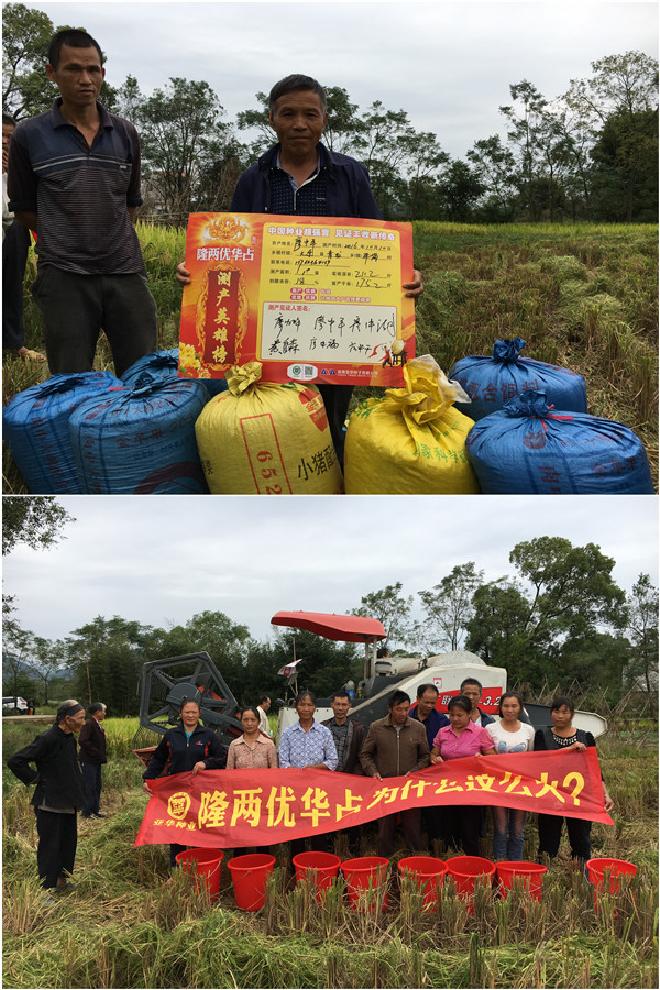 2016年10月10日,在大余青龍鎮(zhèn)成功召開隆兩優(yōu)華占零售商收割觀摩會。一大早40余名瑞金和大余的零售商和種植戶就來到準備收割的田里。近兩年大余雙改單趨勢明顯,一季稻需求增大,鄉(xiāng)鎮(zhèn)的零售商急需找到一個強勢的品種,在今年這種不利的天氣下,不少零售商都聽說了隆兩優(yōu)華占的大名,都想看看到底怎么樣。