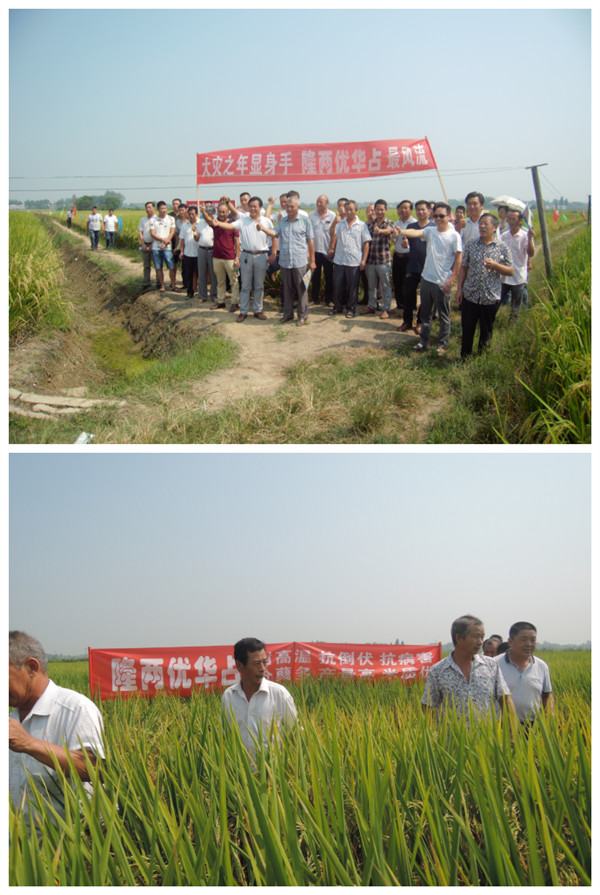 2016年9月11號早上8點(diǎn),室內(nèi)會議現(xiàn)場已經(jīng)布置好,經(jīng)銷商陸陸續(xù)續(xù)抵達(dá),9點(diǎn)30分,喻總帶領(lǐng)一行五十多人驅(qū)車前往位于吳臺村的觀摩現(xiàn)場,經(jīng)銷商圍繞隆兩優(yōu)華占觀摩田繞了一圈,仔細(xì)察看了隆兩優(yōu)華占的結(jié)實(shí)率情況,紛紛表示贊揚(yáng)。