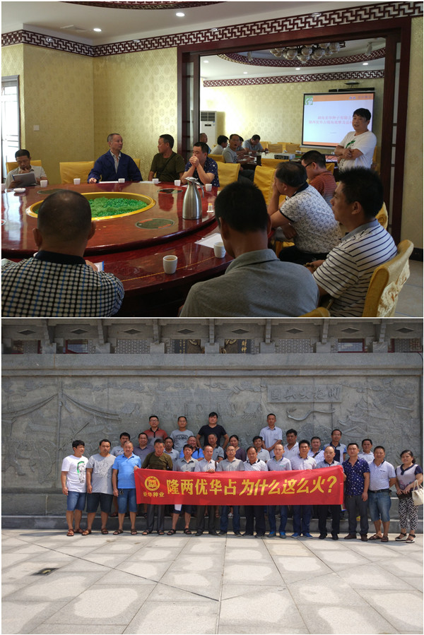 接著安化縣隆兩優(yōu)華占代理商組織了座談討論會。首先由湖南亞華種子有限公司湘北大區(qū)康經(jīng)理就隆兩優(yōu)華占的育種由來、隆兩優(yōu)華占現(xiàn)階段的品種影響及后續(xù)趨勢、隆兩優(yōu)華占預(yù)定的運作思路、隆兩優(yōu)華占的各地表現(xiàn)圖片及新聞報道視頻向與會代表做了PPT的介紹。接著安化隆兩優(yōu)華占代理商韓總就隆兩優(yōu)華占預(yù)定的具體操作細(xì)則及相關(guān)政策做了介紹,同時做了總結(jié)性的發(fā)言并說道:具備良好抗性的隆兩優(yōu)華占非常適合在安化縣種植,而且豐產(chǎn)性好,米質(zhì)優(yōu),希望大家能大力推廣這么好的品種。