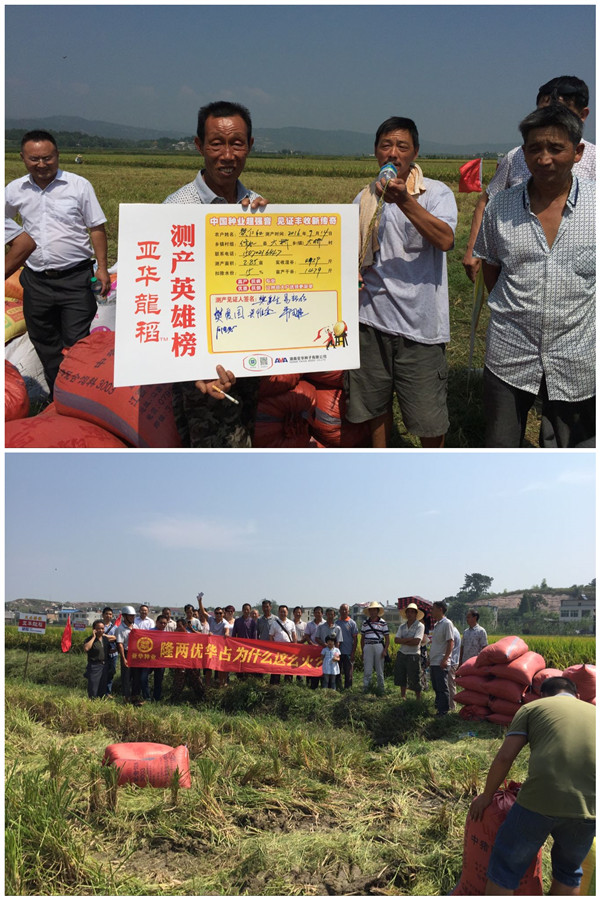 2016年9月14日上午,修水開啟了隆兩優(yōu)華占測產(chǎn)觀摩會首秀,各鄉(xiāng)鎮(zhèn)零售商以及種田大戶四十余人齊聚大橋鄉(xiāng)大橋村隆兩優(yōu)華占十余畝連片示范田,共同見證了隆兩優(yōu)華占實割測產(chǎn)喜獲豐收。