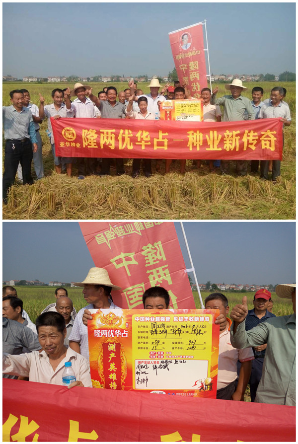 2016年9月12日,湖北漢川市里潭鄉(xiāng)周余臺村金黃的稻田上空,中國龍稻的紅旗隨風飄揚,30余位種田大戶見證了隆兩優(yōu)華占在漢川豐收的傳奇。