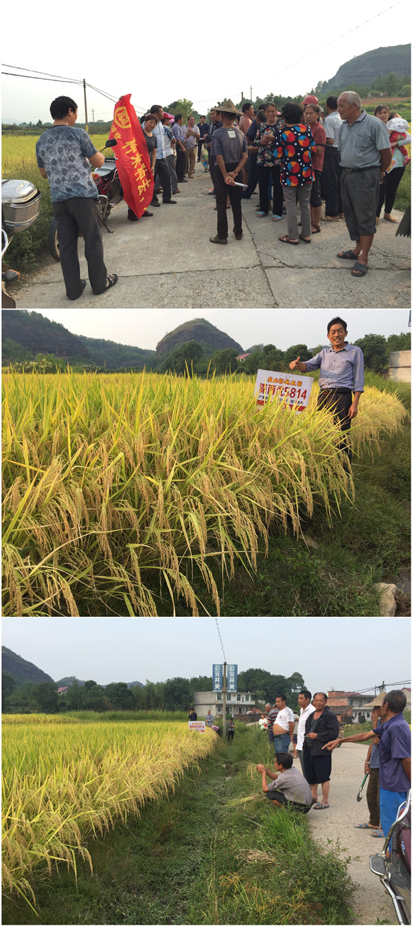 深兩優(yōu)5814自進入種業(yè)市場以來,一直以它穩(wěn)定、優(yōu)異的表現(xiàn)深受青睞。2016年9月23日,在流口鎮(zhèn)經(jīng)銷商黃老板組織下,召開一場50多人的農民觀摩會。此次會議主要展現(xiàn)深兩優(yōu)5814與當?shù)仄渌贩N對比下的表現(xiàn)。深兩優(yōu)5814在七月中旬至八月中旬長達一個月的持續(xù)高溫下依舊有高達89%的結實率,而另外的幾個品種卻差強人意。有一種植戶隨機采取了一穗5814和一穗其他品種,從外觀上看去,兩者差不多都有300多粒,但是農戶細數(shù)后驚嘆道:“深兩優(yōu)5814有276粒,實粒數(shù)有243粒;另外品種有264粒,實粒數(shù)76粒”;還有一種植戶說道:“自家今年種植了十幾畝常規(guī)種,今年預計畝產有500斤就算很好了”。