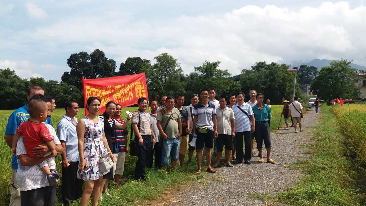 2016年8月13日,在江華代理商鐘老板的組織下,江華部分經(jīng)銷(xiāo)商及種植大戶(hù)匯聚在沱江鎮(zhèn)梁木橋村,一起觀摩深兩優(yōu)5814再生稻頭季的種植表現(xiàn)。