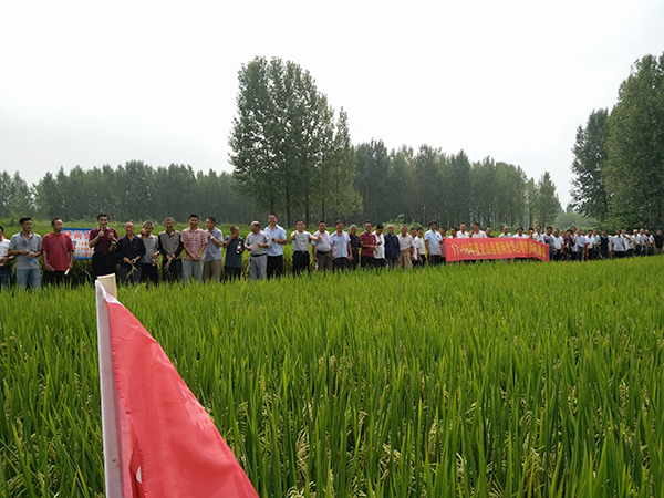 上午9時(shí),大家來到示范田,映入眼簾的則是600畝連片種植的隆兩優(yōu)華占,田埂邊插滿了小紅旗,壯觀無比。大家一路邊走邊看、邊看邊“摸”,很多人情不自禁的感嘆:“這品種真好,賣了這個(gè)品種都不用擔(dān)心農(nóng)戶會(huì)找你事“、“是的,我今年也種了,溫度這么高但這產(chǎn)量可不低,明年多栽點(diǎn)。”