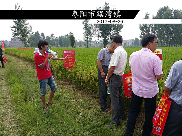 2017年8月26日湖北省棗陽市召開隆兩優(yōu)華占的市場(chǎng)啟動(dòng)會(huì),早上10點(diǎn)由農(nóng)富樂農(nóng)業(yè)有限公司周愛國(guó)總經(jīng)理帶領(lǐng)棗陽市各個(gè)鄉(xiāng)鎮(zhèn)30余位零售商來到踞灣鎮(zhèn)隆兩優(yōu)華占的模范田塊進(jìn)行觀摩。