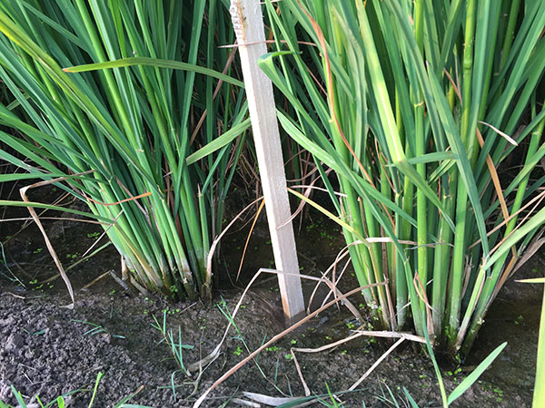 涴市鎮(zhèn)位于松滋市東北部,地處長江南岸,因江水在此北折東流,呈回曲之貌而得名。2017年8月28日,天氣晴朗,松滋市代理商吳總和松滋市涴市鎮(zhèn)零售商許元許經(jīng)理一起帶領(lǐng)該鎮(zhèn)10余名種植能手專程驅(qū)車幾十公里前往位于老城鎮(zhèn)的隆兩優(yōu)華占田塊觀摩,觀察品種的優(yōu)異表現(xiàn)。