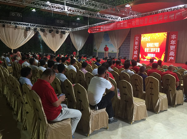 2017年8月27日,在固始縣代理商殷茂貴的組織下,在李店鄉(xiāng)舉行了一場零售商兼大戶200多人的大型觀摩會(huì)。