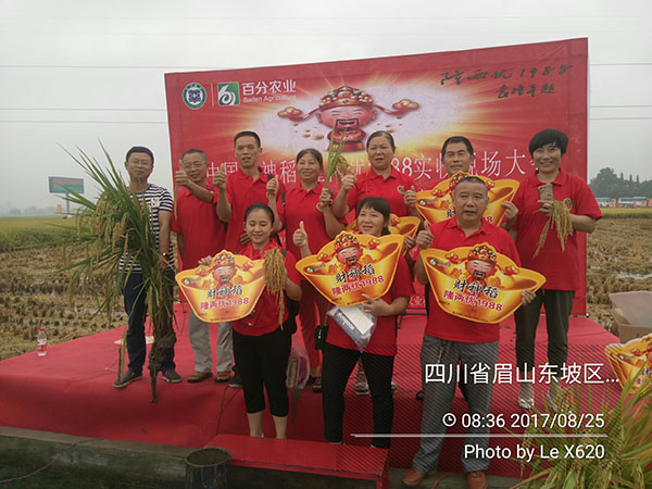 2017年8月24-25日,在蘇東坡的故鄉(xiāng)眉山市順利舉行了百分農(nóng)業(yè)四川區(qū)域2017-2018年度財神稻現(xiàn)場實收測產(chǎn)觀摩暨市場啟動大會。百分農(nóng)業(yè)總經(jīng)理江潤良,西南大區(qū)經(jīng)理楊總,四川壹稼人總經(jīng)理燕總攜團隊,及四川各區(qū)域的代理商、零售商和種植大戶200余人參與了會議。