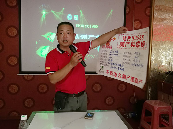 2017年8月29日在衡南隆兩優(yōu)1988代理商組織下,衡南洪山鎮(zhèn)迎來了60多位來自鄉(xiāng)鎮(zhèn)的零售商和種植大戶,一起觀摩隆兩優(yōu)1988的田間表現(xiàn)并且進行現(xiàn)場測產(chǎn)。