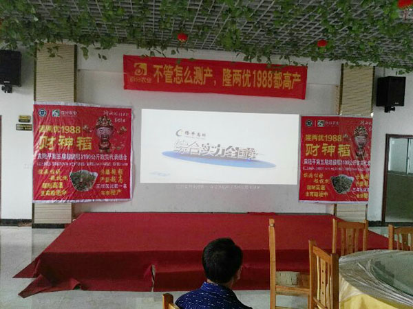 十點(diǎn)整,訂購(gòu)會(huì)正式開始,主持人周老板上臺(tái)簡(jiǎn)單介紹本次會(huì)議議程,接著胡經(jīng)理上臺(tái)介紹了公司發(fā)展?fàn)顩r,講解財(cái)神稻隆兩優(yōu)1988的品種由來(lái)及產(chǎn)品特征特性,臺(tái)下的農(nóng)戶們也認(rèn)真參與互動(dòng)提出了自己的疑問(wèn),胡經(jīng)理則一一解答。最后主持人周老板宣布訂購(gòu)開始,訂購(gòu)非?;鸨?,共訂購(gòu)了一千多斤。