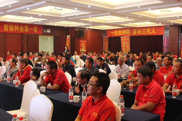 隨后,會議由百分農(nóng)業(yè)總經(jīng)理江總分析在當(dāng)今的形勢下如何順勢、借勢、造勢把品種做大做強(qiáng)以及介紹公司的基本情況;皖西朱經(jīng)理對隆兩優(yōu)1988的品種特性和如何高產(chǎn)進(jìn)行介紹;蘇皖大區(qū)經(jīng)理李總就市場管理方面和后續(xù)公司的品種進(jìn)行講解和介紹。接下來是來自定遠(yuǎn)代理商楊總、霍邱汪總、壽縣韓總對財(cái)神稻在當(dāng)?shù)氐谋憩F(xiàn)和推廣經(jīng)驗(yàn)的分享。會議的最后由亞華集團(tuán)總經(jīng)理孫總做最后的重要講話。