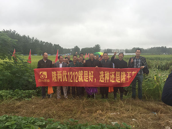 近日來(lái),固始縣一直都是陰雨天氣,會(huì)議當(dāng)天也一直下著雨,但并沒(méi)有澆滅農(nóng)戶們對(duì)隆兩優(yōu)1212的熱情,依然有很多農(nóng)戶參加了會(huì)議。上午10點(diǎn)多,在陳老板夫婦的帶領(lǐng)下,大家冒著雨觀摩了隆兩優(yōu)1212的田塊,同時(shí)也和周邊的田塊從結(jié)實(shí)率、抗倒性等多方面進(jìn)行了對(duì)比,都有比較明顯的優(yōu)勢(shì),各位農(nóng)戶對(duì)隆兩優(yōu)1212也是贊不絕口,直夸品種好。
